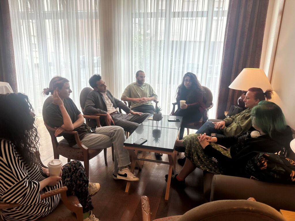 Ані Асатрян, Екатеріне Тоґонідзе, Віра Курико, Астгік Арутунян, Лука Лашхі, Софія Покорчак та Міхеіл Ціхелашвілі після численних онлайн-сесій вперше зустрітися наживо, щоб протягом свого чотириденного візиту поділитися ідеями і представити вже виконану частину роботи.